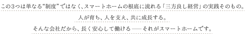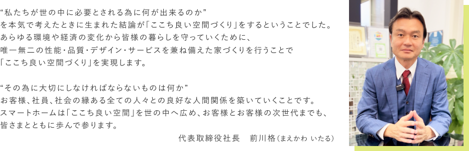 スマートホームは「ここち良い空間」を世の中へ広め、お客様とお客様の次世代までも、皆さまとともに歩んで参ります。